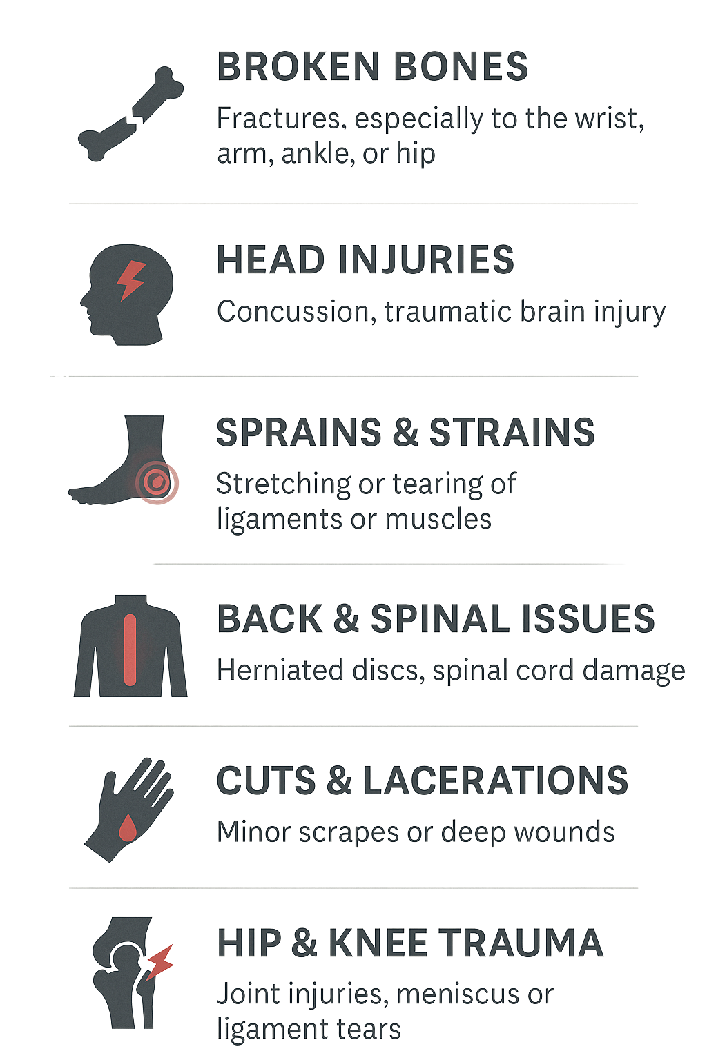 Common injuries include:
